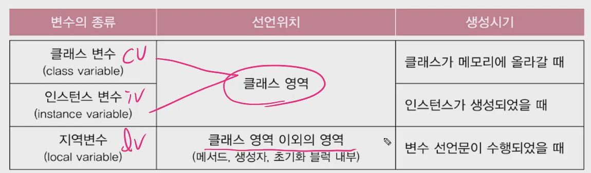 인스턴스 변수는 인스턴스 생성시에 생성된다.