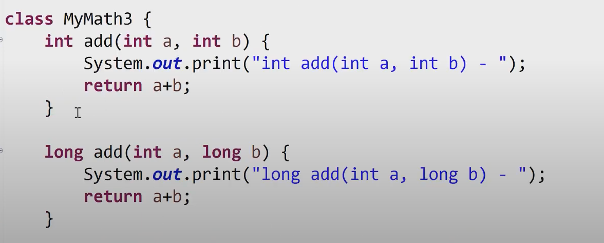 3. 반환 타입은 영향없다. ( 반환 타입이 다른 것으로는 오버로딩이 성립 되지 않는다. )