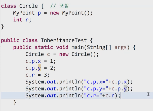 - 클래스의 멤버로 참조변수를 선언하는 것.